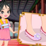 - Princess Mulan Shoes Designer is a free online game that can be played in desktop, tablet or mobile phones. No installation is required. It is a cartoon game. Could you girls help princess Mulan design a pair of new shoes? Join the brave princess in getting the Princess Mulan Shoes Design'game for girls started and first of all, select from a wide variety of shapes the girly girl shoes out beautiful princess should wear today. Next, using your brush color the chosen pair of shoes by selecting from the great plurality of colors and patterns your favorites. Also, in order to make Mulan's new shoes look just a little bit more girly girl you can accessorize them with over-sized bows, ruffles, flowers or any other decorations of your hoice. Wonderful job, ladies princess Mulan loves her new pair of shoes! Now why don't you teach her how to properly wear them? On the next page of this Disney Princess game you can select from six different shirts and six matching high waisted skirts the mix you find more suitable for the pair of shoes you've created. Have a great time, girls! The game was played 9 times since February 16, 2019.